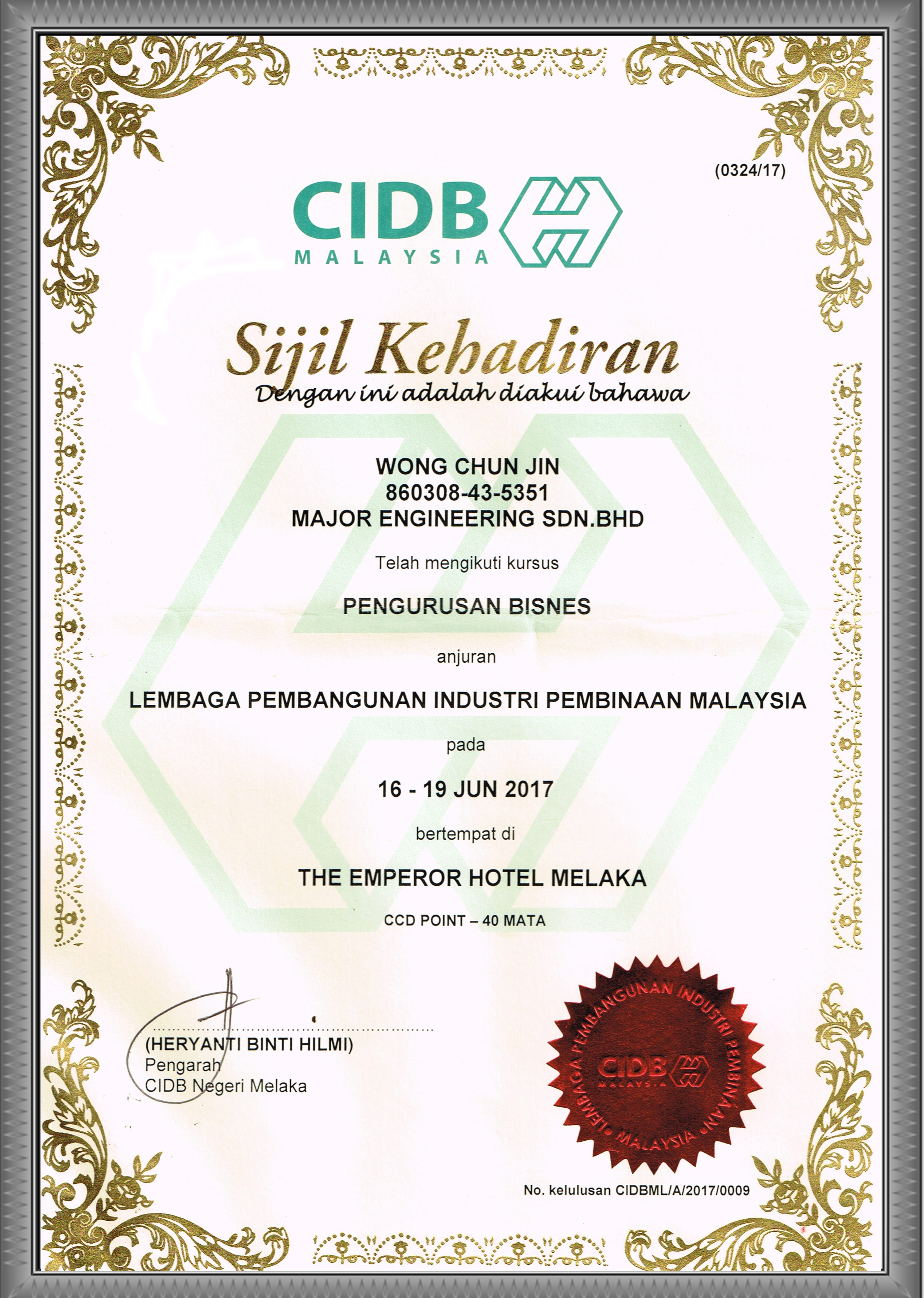 CIDB Sijil Kehadiran