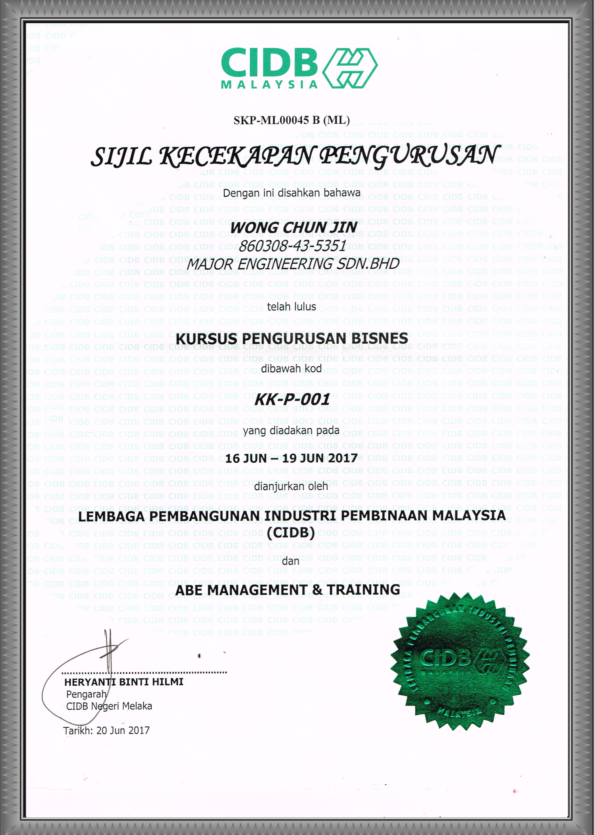 CIDB Sijil Kehadiran